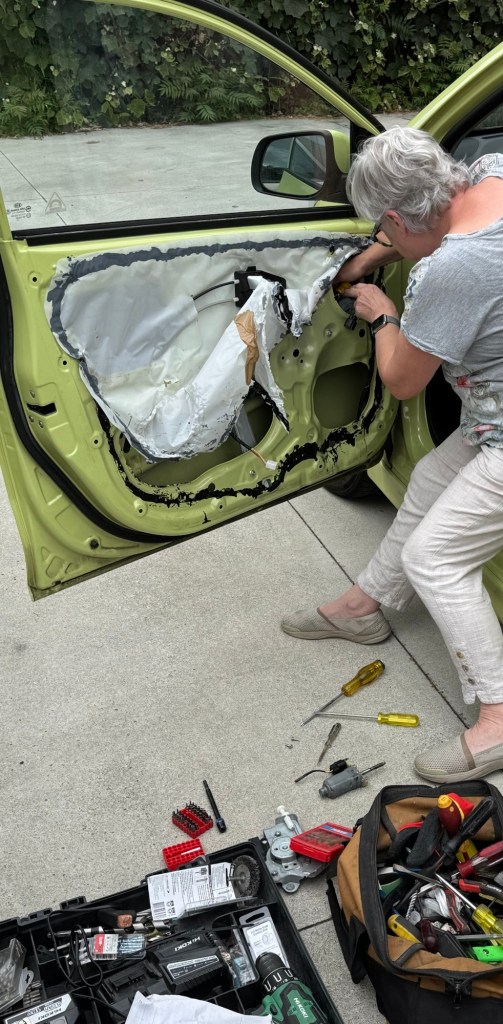 Getting ready for the trip back to Rotorua I thought maybe I could try and fix the broken window motor on the passenger side. First a trip to the wreckers who listed the same model car but a year older. The yard was like stepping onto a movie set, a couple of hard case characters at the entrance were just the beginning. Found the car, eventually, found the motor and $30 later I was feeling like this might just work. An hour later covered in black sticky stuff, dirt, grease and assorted stains I found I had learned two things, don’t wear light coloured clothing to a wrecking yard and a 2011 window motor is never going to fit a 2012 car.