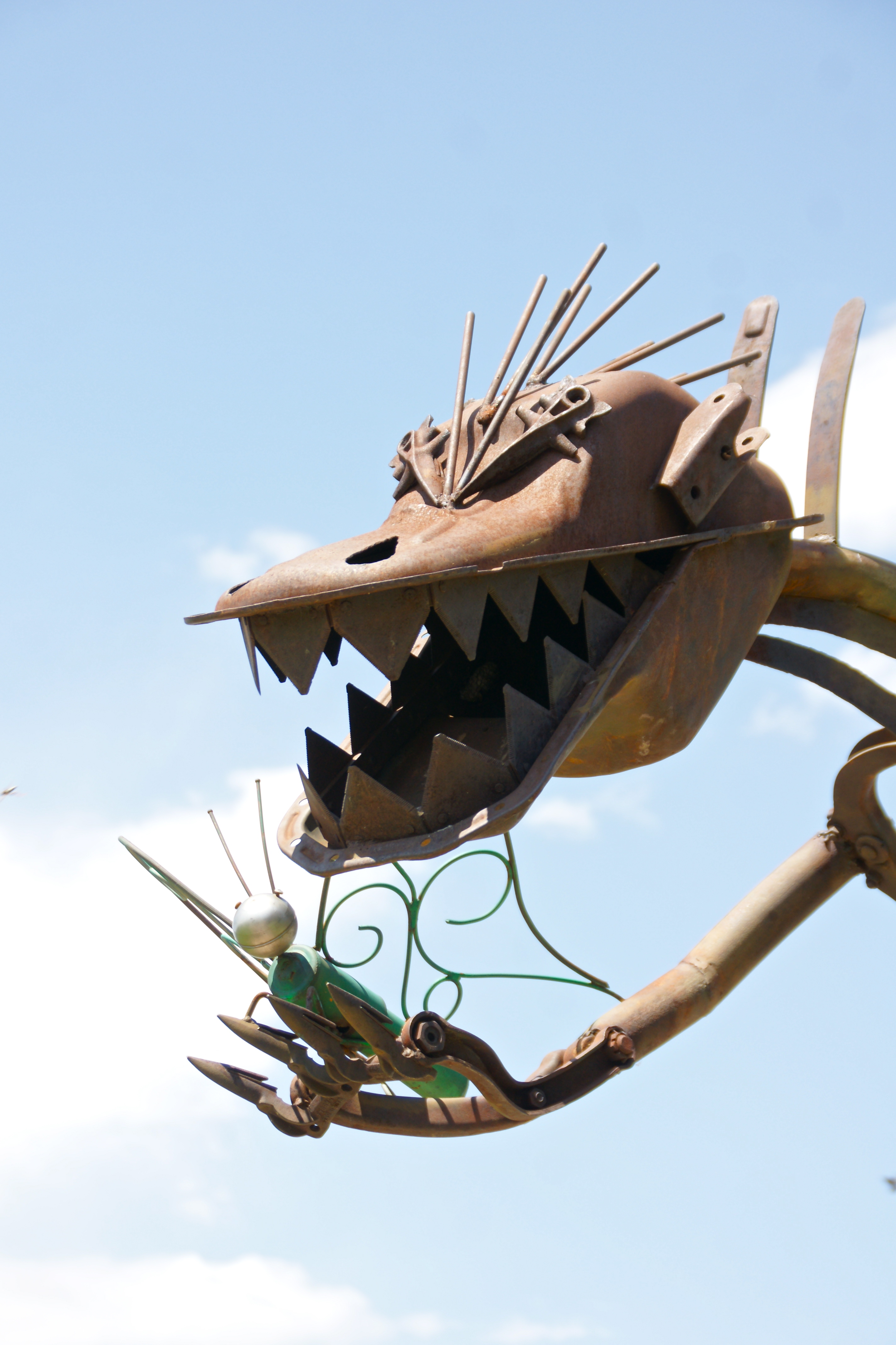 This morning we went to the Swetsville zoo, a sculpture park with all the exhibits made from old pieces of engines and farm equipment. An eccentric place of wonder and imagination. I loved the dinosaur of tomorrow with its engine, wheels and little driver in the mouth.