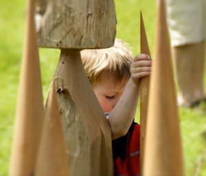 This was an outdoor Art Exhibition, the kids were fascinated with the small stockade and the silky feel of the beautifully tuned wooden stakes. This photo tells the story.