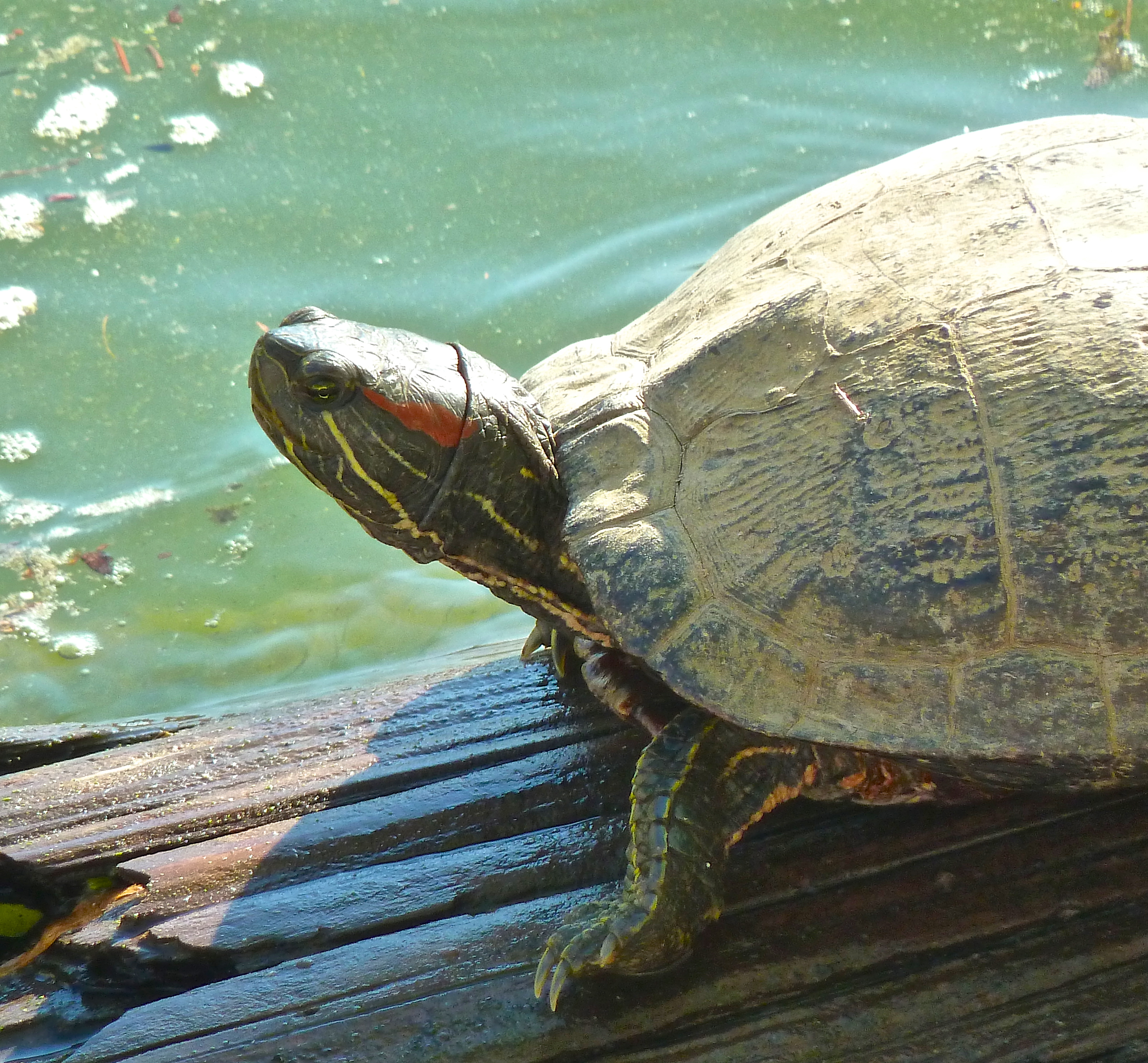 The sun came out, that may sound commonplace until your realize I am talking about Seattle, so let me repeat…. The sun came out….. It has been the most amazing May weather and with the sun a clutch of turtles have made their appearance on the lake just outside my window. I was looking down and I swear I saw a turtle winking back at me. I ran downstairs and sure enough sitting on a log was what I have now discovered is a Red Slider. Not just one red slider but logs full of them. I watch them out the window now, as soon as the sun comes out there they are, but more interesting are the kids and Boeing employees that wade thought the landscaping to peer through the rail sat them. They are the stars of the cove, where the logs and the trash back up against the jetty, maneuvering in the mud and sunning themselves on the logs.