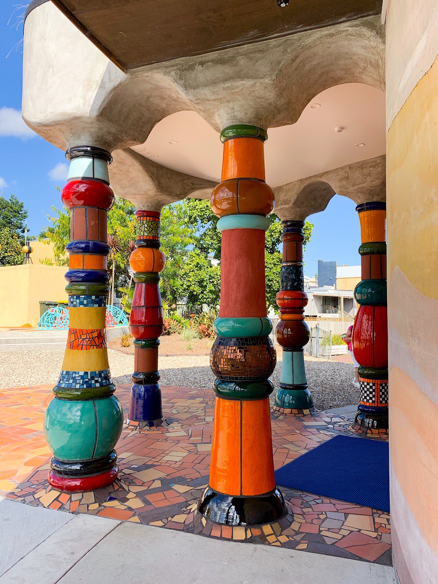 I had never been before and it looks like I really was missing something. The classic public toilets of Kawakawa, the Hundertwasser ablution block. The toilets and the new library and park behind are so colourful and quirky, so unexpected in what would have a been an ordinary small kiwi town and I loved it. Once I had seen this I noticed Hundertwasser-ish works of art seem to pop up between here and Whangarei at surprising places and now Whangarei is building its own controversial multimillion tribute, partly built it looks interesting but not quite (yet) the colourful confusion that springs from the man himself.