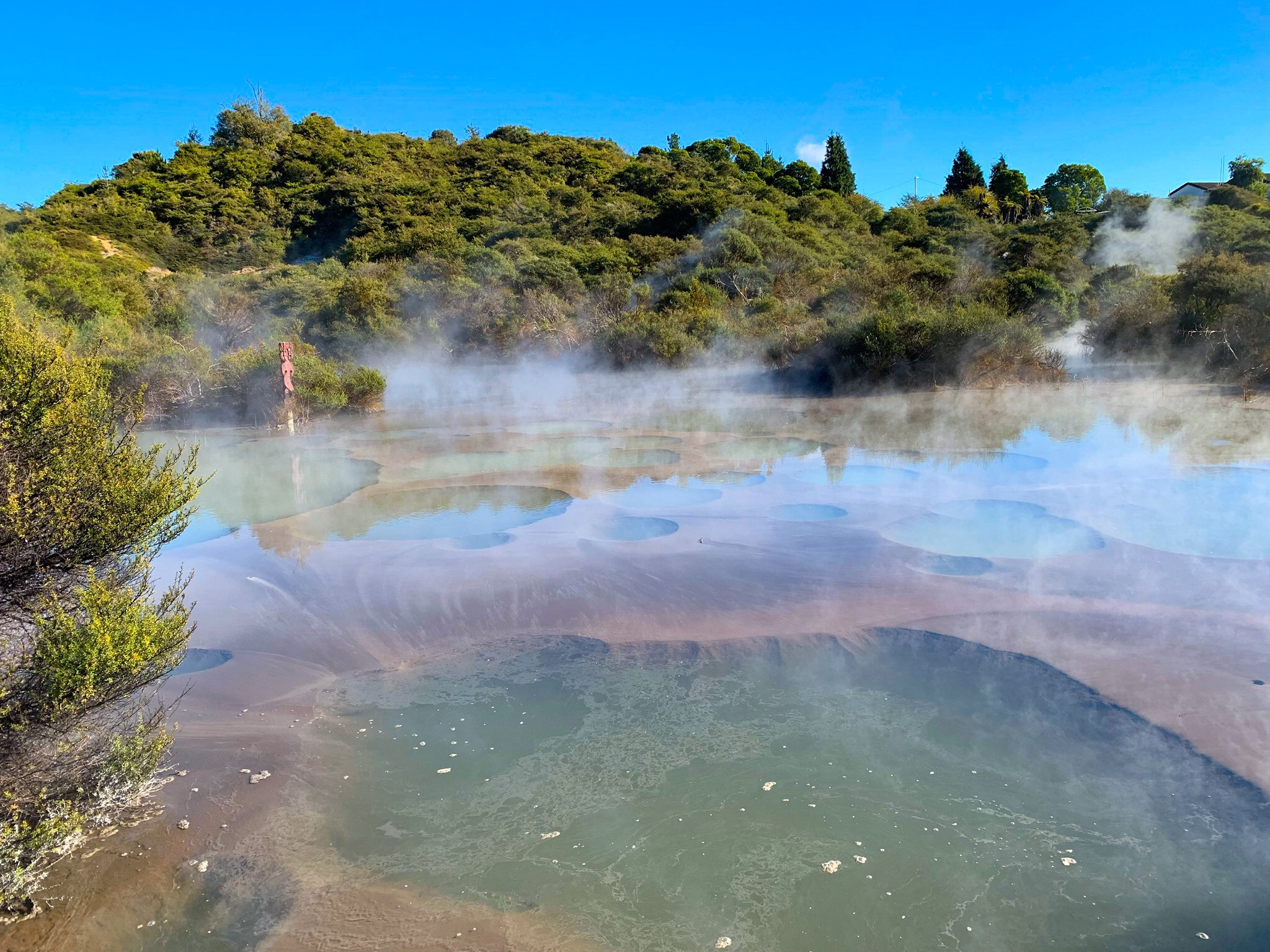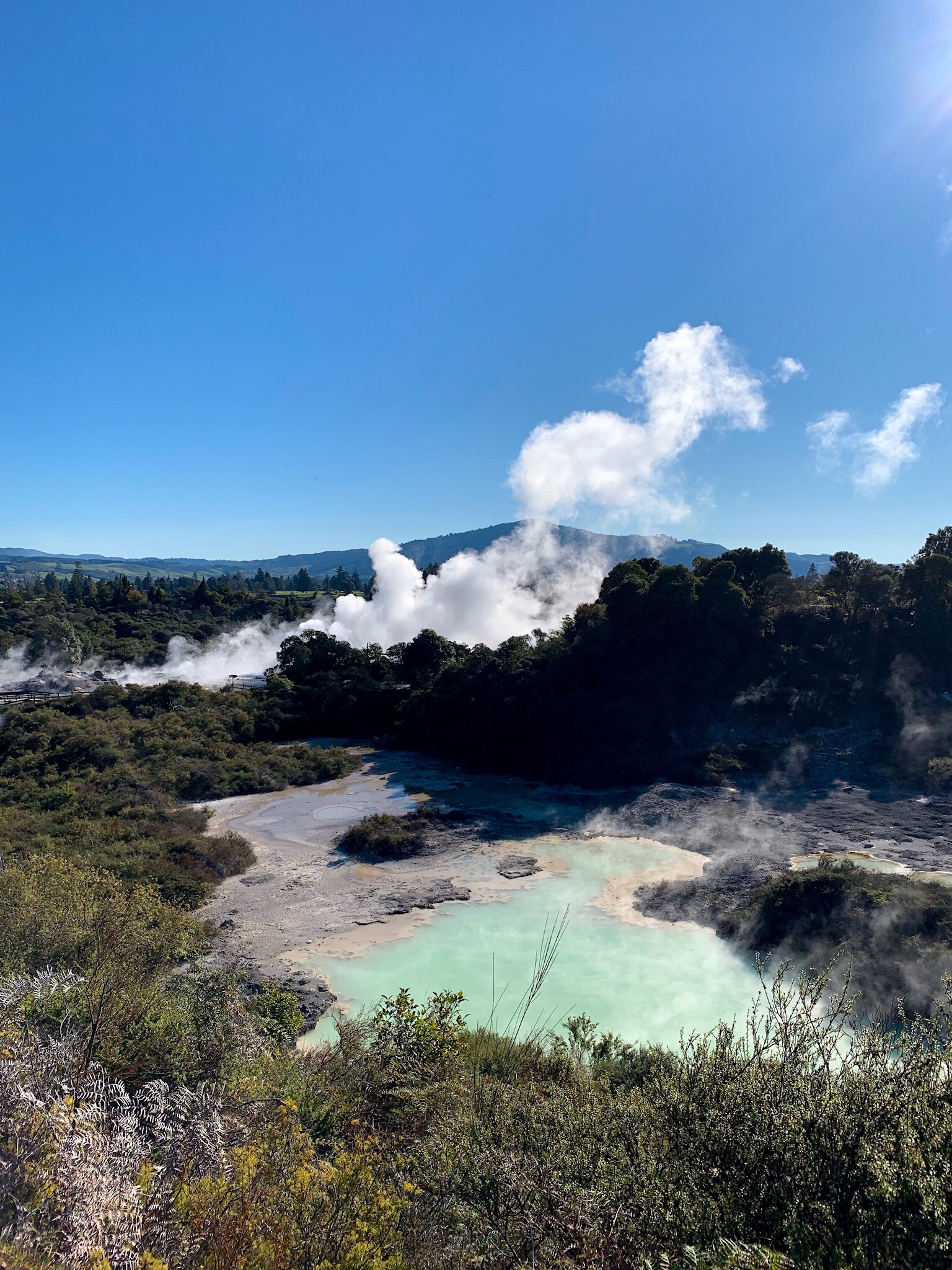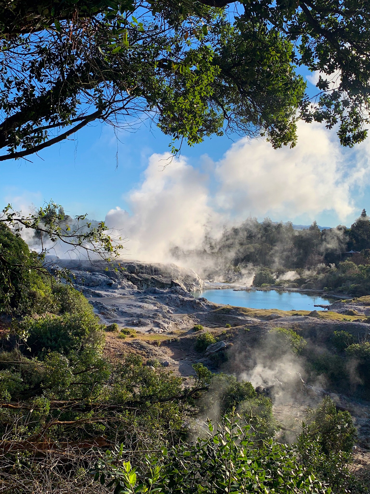 Crisp sunny day, chilly but clear and the geysers were active. Fun day out after weeks of rain and then today we are back to fog and freezing temperatures.