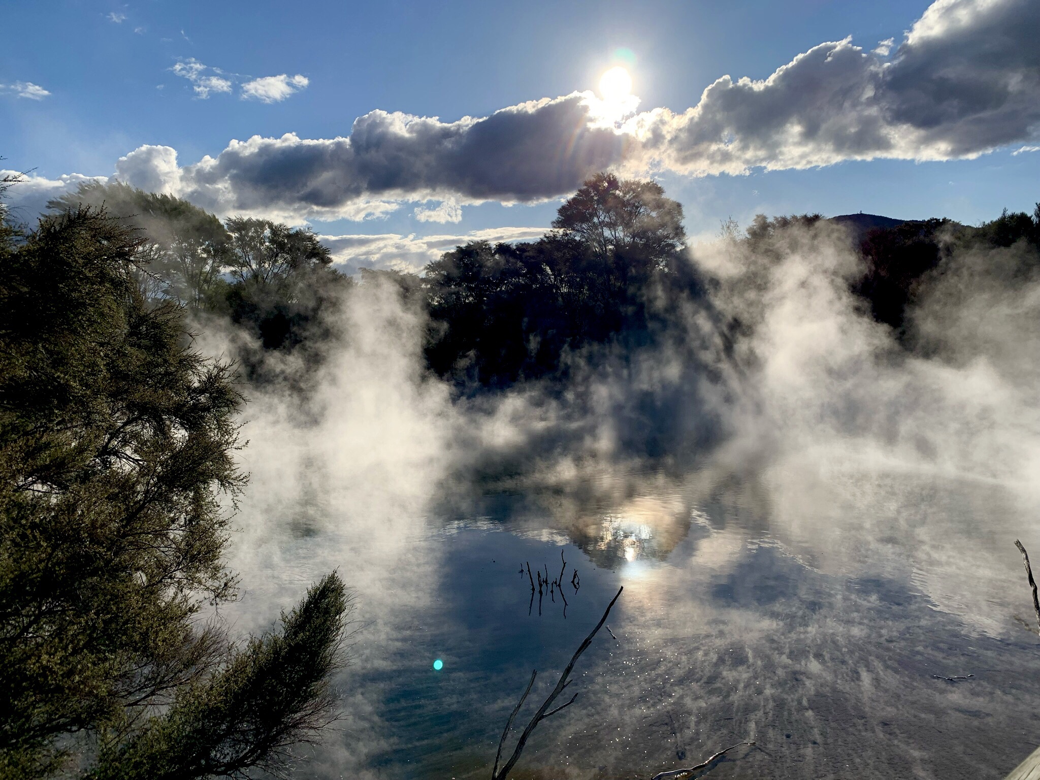 In the middle of town there is a park that surrounds a large area of thermal activity. Huge old trees and winding trails through the thermal pools and steam vents, in places it’s like an English garden then around the corner it’s a wilderness.
