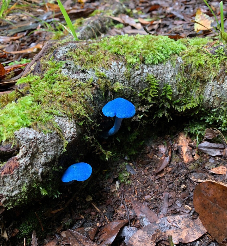 In between rain storms and cyclones I took a trip to Mokaihaha Ecological Reserve about an hour out of Rotorua. Stunning huge moss covered trees and ferns, the path leads down a very steep muddy path to a lake of perfect reflections and back up paths made of tree roots and steep clay banks. This is one of a few places you can find the blue mushrooms that grace our $50 bill. Like a treasure hunt it’s so much fun to look for them and find some perfect specimens. The torrential rain has destroyed most of them but we love in hope that a few weeks of fine weather will bring out more.
